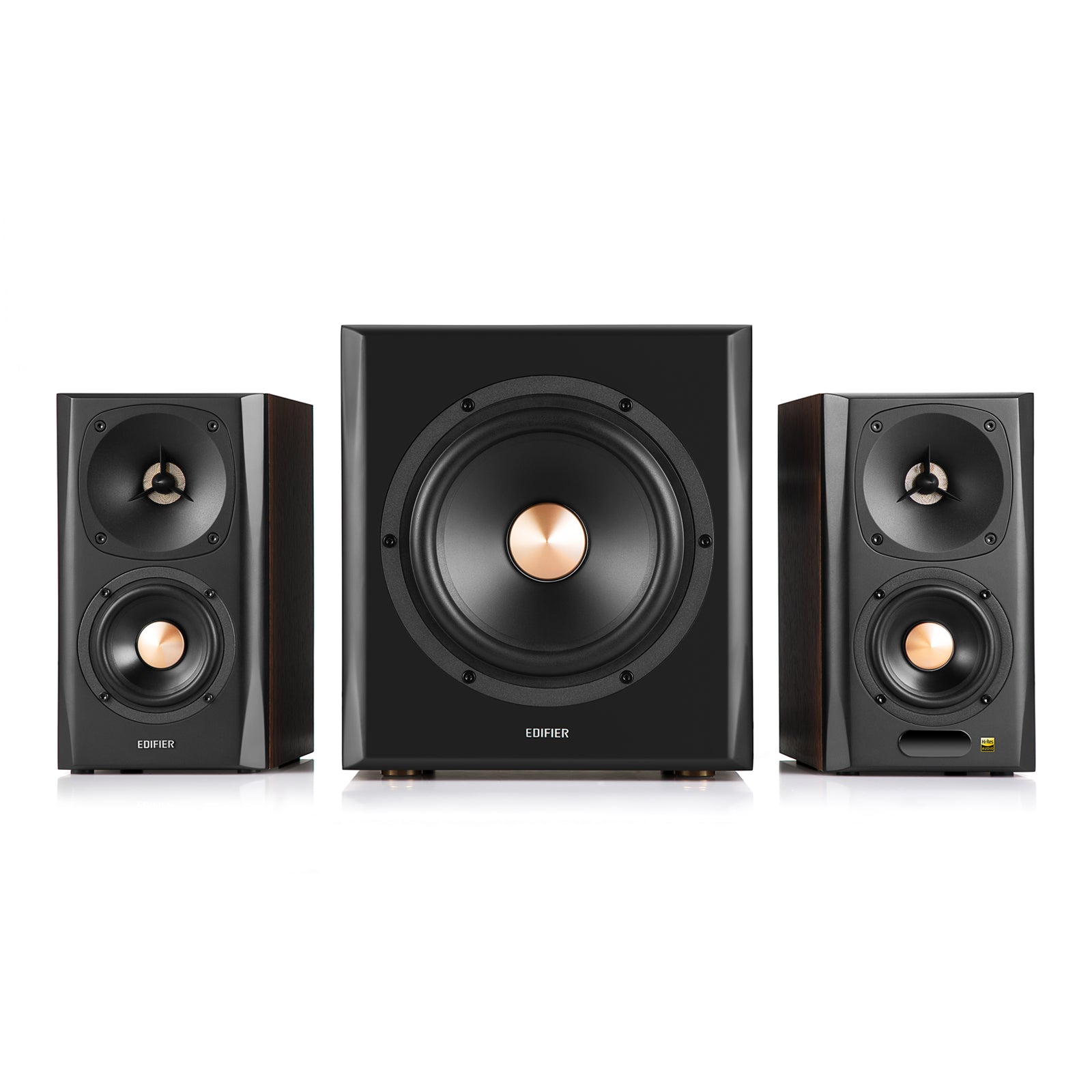 Don't settle for 2.1 speaker systems that rely on dinky little satellite speakers. Our S360DB uses real bookshelf quality speakers to complement the system's powerful subwoofer. Enjoy a true home theatre experience with an 8" woofer unit that pumps out rich, room-shaking bass, and planar diaphragm tweeters that offer clear highs to immerse you in your favorite songs and movies. A dark wood finish rounds out the package by offering a stylish, classic look, while its MDF enclosure prevents cabinet resonance from affecting the clarity of the audio. Experience true home audio immersion today with the S360DB.